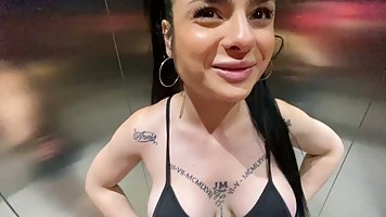 פיקאפר צולה את הפות הצעיר של ברונטית בשירותי סופרמרקט