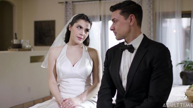 ברונטית בשמלה לבנה עושה פלוץ לחברה לפני החתונה שלה