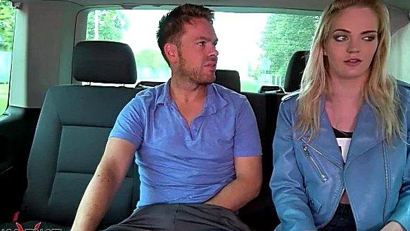 ברונטית חתיכה נענית בתאווה לנהג המונית במושב האחורי