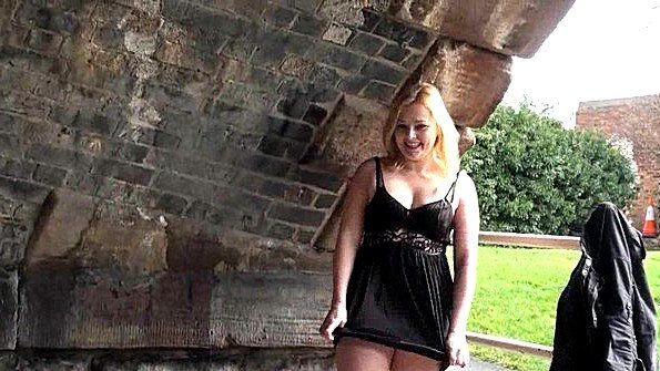 בלונדינית שמנה מערסלת את הפילטוק שלה ברחוב בלי בושה ולא מתביישת