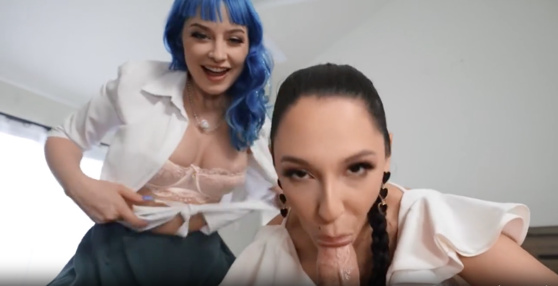 בחורה עם שיער כחול מציעה לזיין גם את החברה שלה